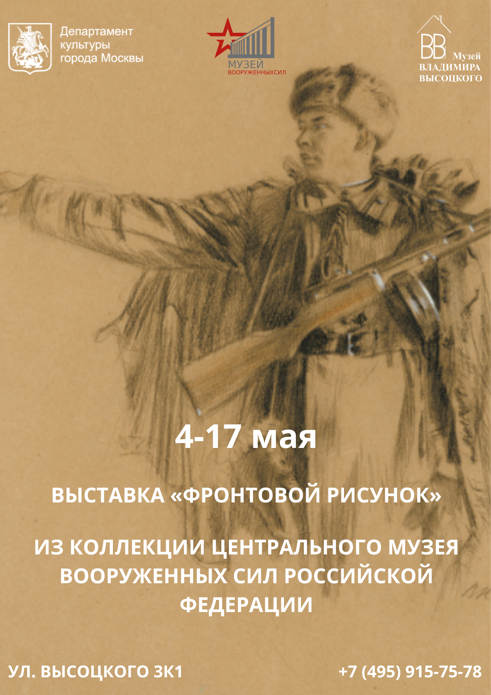Государственный Музей Владимира Высоцкого совместно с Центральным Музеем Вооруженных Сил представляют выставку “Фронтовой рисунок”.