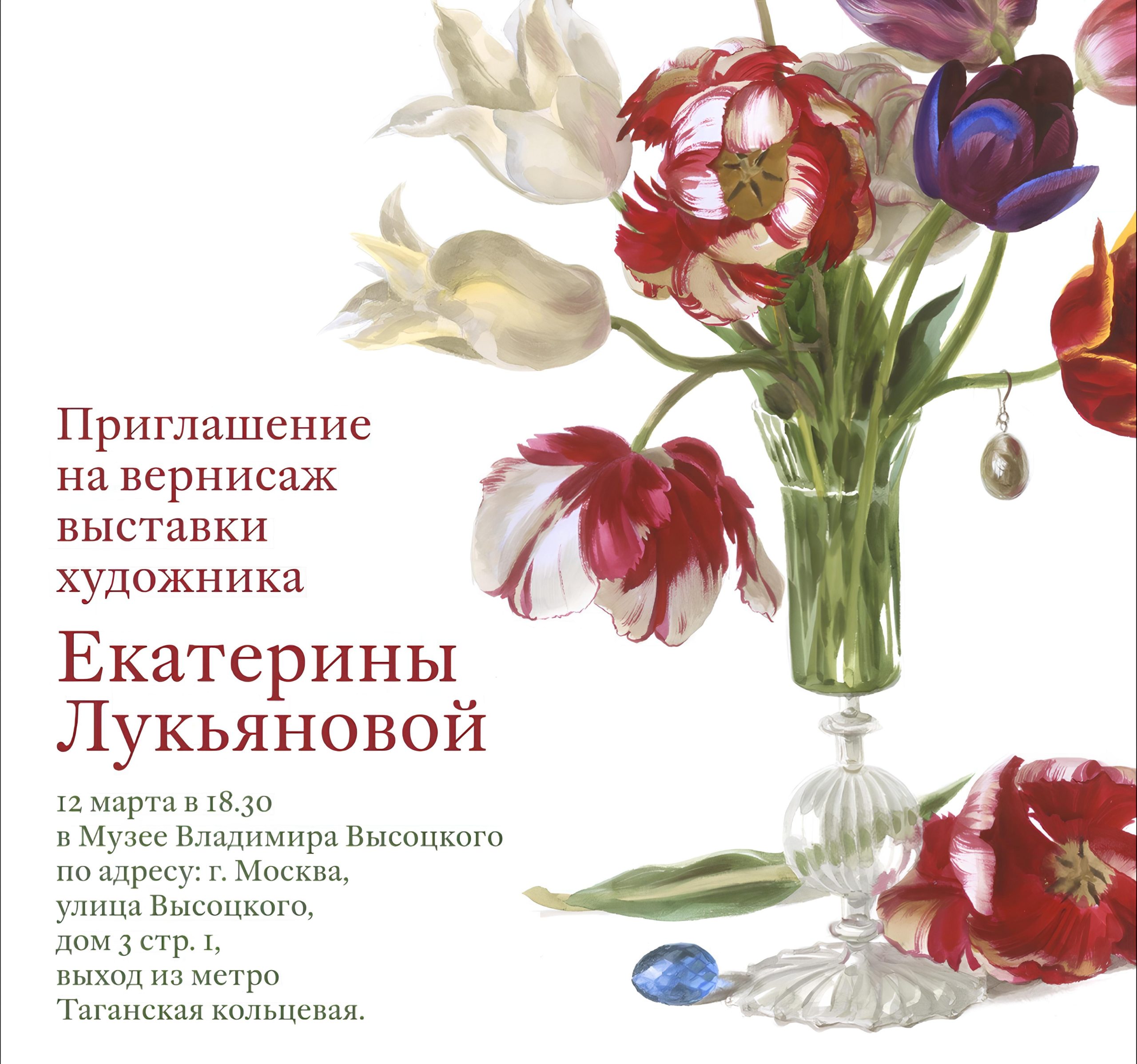 12 марта 2026 в 18:30 в выставочном пространстве Государственного музея Владимира Высоцкого пройдет творческая встреча в рамках экспонирования выставки “Навстречу весне” с московской художницей Екатерины Лукьяновой. Название “Навстречу весне” выбрано не случайно. Екатерина — представитель третьего поколения известной художественной династии, мастер, виртуозно владеющий не только кистью, но и искусством чувствовать душу предметов. Ее работы — […]